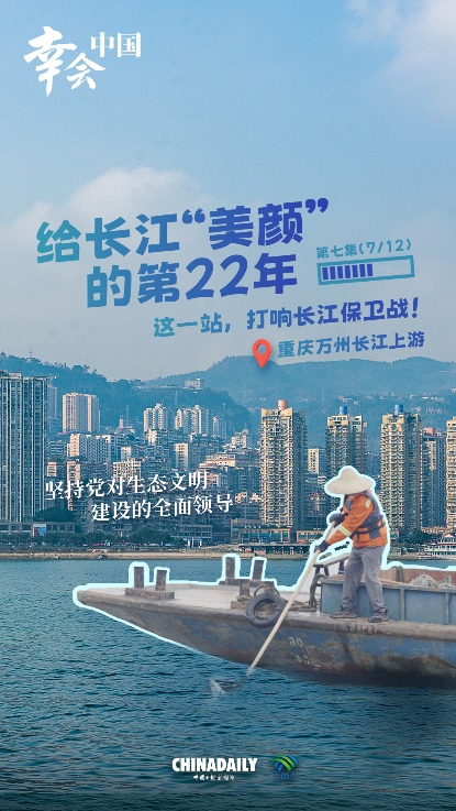 这一站,我们来到长江上游的重庆万州。长江自雪山高原南下,穿越崇山峻岭,在此汇聚成磅礴伟力,滋养大地。守护长江,成为了千万人民共同的心愿。重庆市万州区在2003年成立了“清漂队”,他们常年坚守在江面上,风餐露宿只为护佑一江清流;长江十年禁渔制度的实施,让长江生态系统有了更长远的发展;而河长制的全面落实,则让每条河流都有了专人守护。