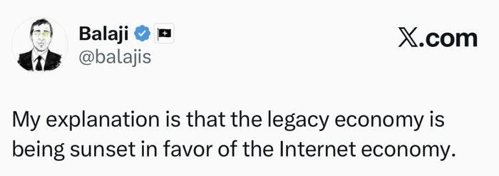 这个问题引来了多方关注,其中最引人注目、也最大胆的回应,来自著名的思想家、前Coinbase首席技术官巴拉吉·斯里尼瓦桑(Balaji Srinivasan)。