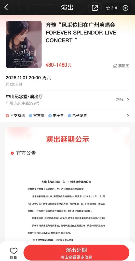 网络消息显示,屠颖是在广州齐豫演唱会准备期间,因跑步发生意外离世。11月1日下午3时,齐豫“风采依旧·在”广州演唱会发布紧急公告,表示“因团队成员突发意外,原定于2025年11月1日在广州中山纪念堂举办的齐豫广州演唱会无法正常举行”,“经与各方紧急协商并慎重评估,我们决定本场演出延期。”