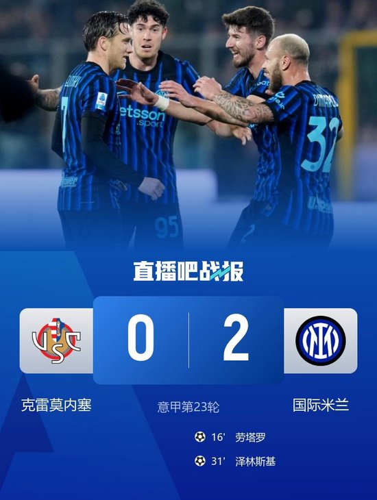 直播吧2月2日讯 北京时间2月2日凌晨1:00,2025-26赛季意甲联赛第23轮,克雷莫内塞坐镇吉奥瓦尼-齐尼体育场迎战国际米兰。上半场迪马尔科助攻劳塔罗头球破门,泽林斯基世界波,国米暂2-0克雷莫内塞;下半场两队都没能改写比分,最终国米2-0战胜克雷莫内塞,各项赛事三连胜,先赛一场8分领跑。
